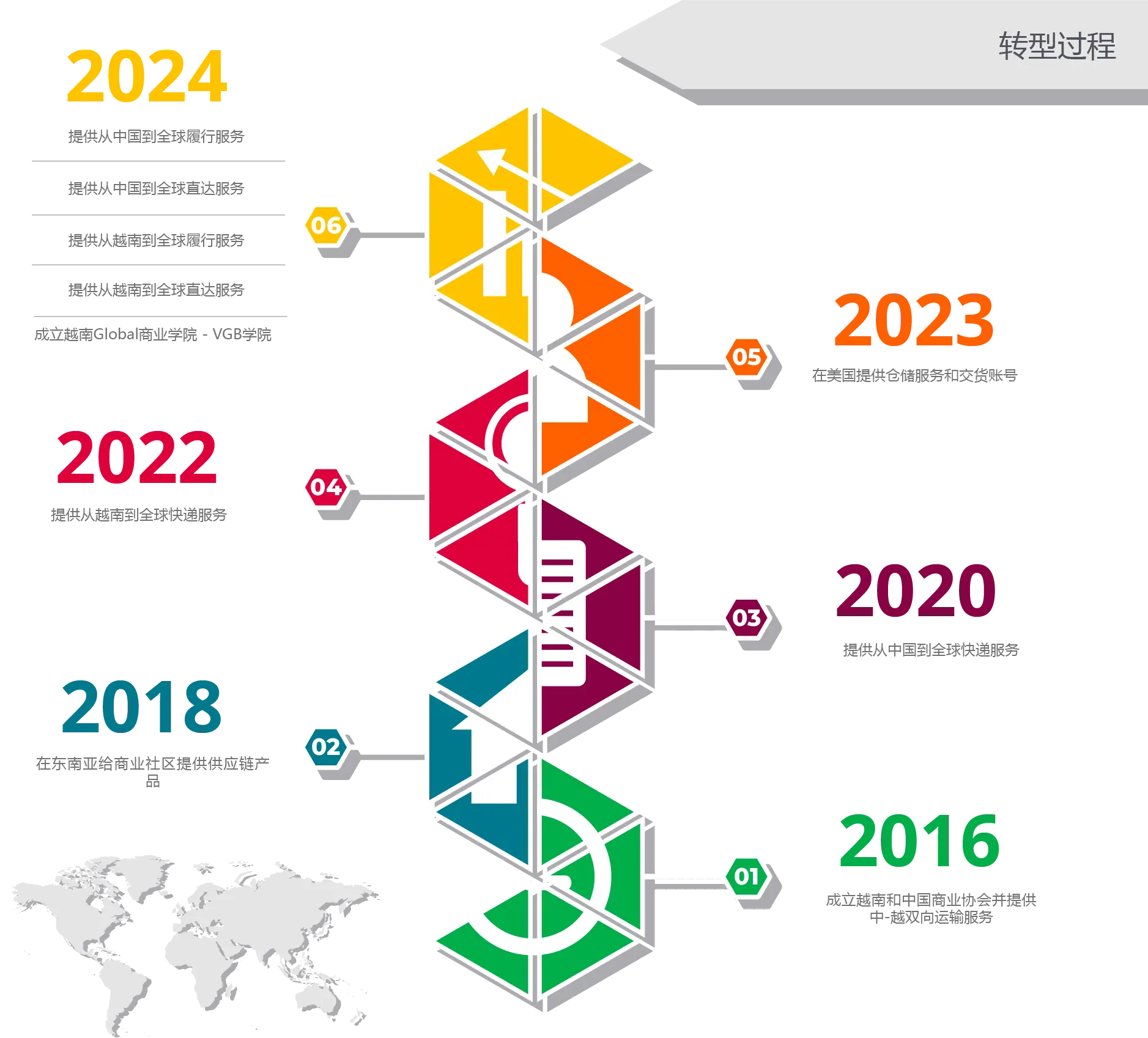 成为越南、中国、美国全球电子商务物流服务领域的领先企业,并在我们选择的其他领域建立地位